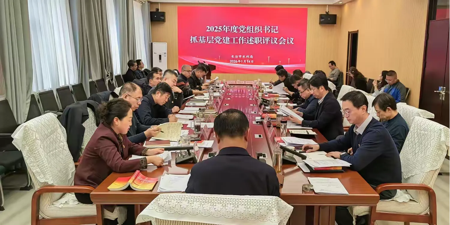 为深入学习贯彻习近平新时代中国特色社会主义思想和党的二十大、二十届历次全会精神,全面落实新时代党的建设总要求和新时代党的组织路线,压实压实基层党建工作责任,提升党建工作质效,按照市委组织部、市直工委安排部署和局机关党委年度工作安排,2026年1月14日,长治市水利局召开了市直水利系统2025年度党组织书记抓基层党建工作述职评议会。局领导、局机关各科室负责人、局属各基层党组织书记等30余人参会,会议由唐建莉同志主持。