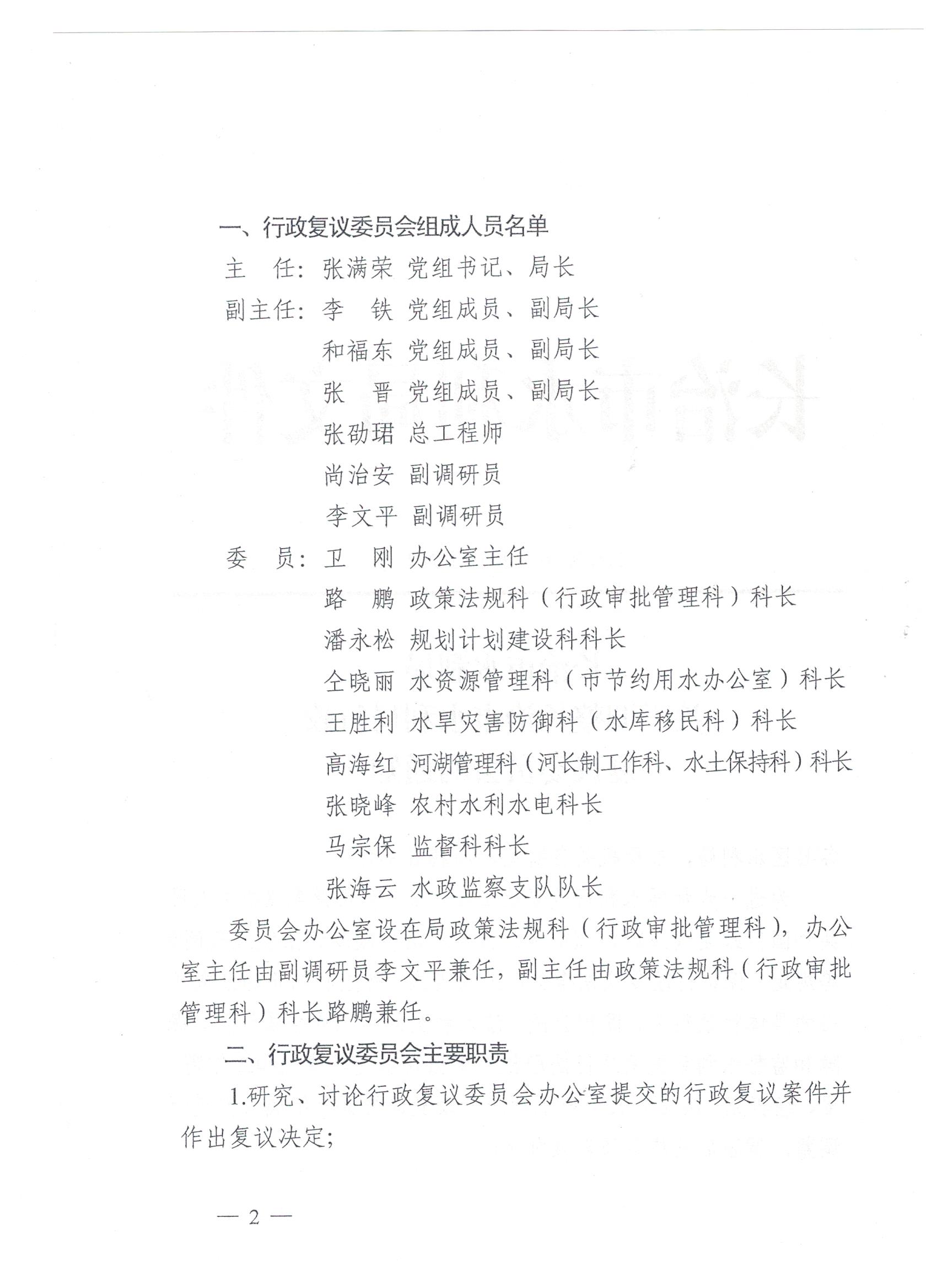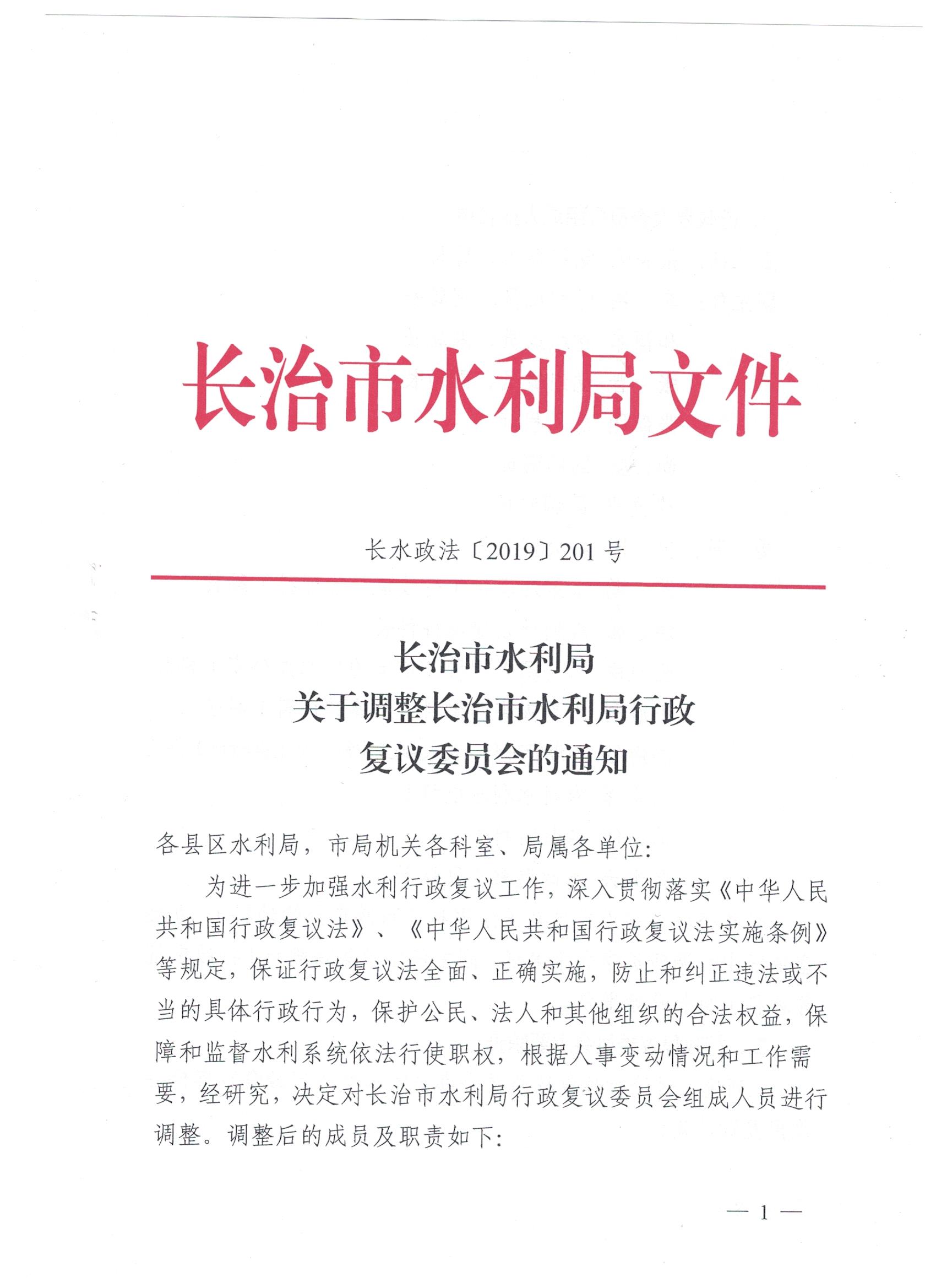长治市水利局关于调整长治市水利局行政复议委员会的通知