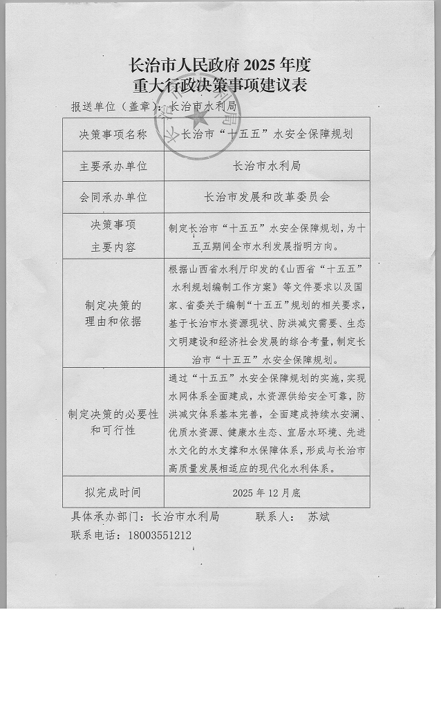 长治市水利局2025年度重大行政决策事项建议表(废止)