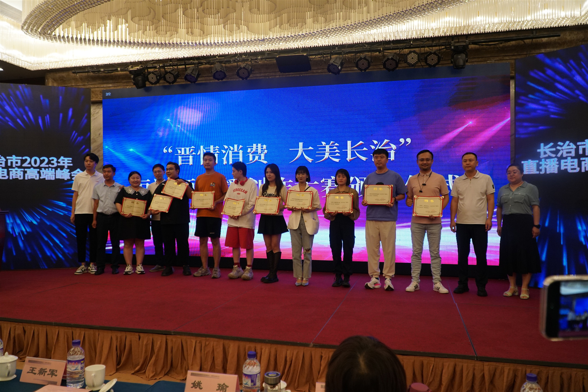 峰会上,与会领导、嘉宾为短视频直播创作大赛获奖选手进行了颁奖;为“晋情消费·大美长治”2023年网络星推官颁发了聘书。