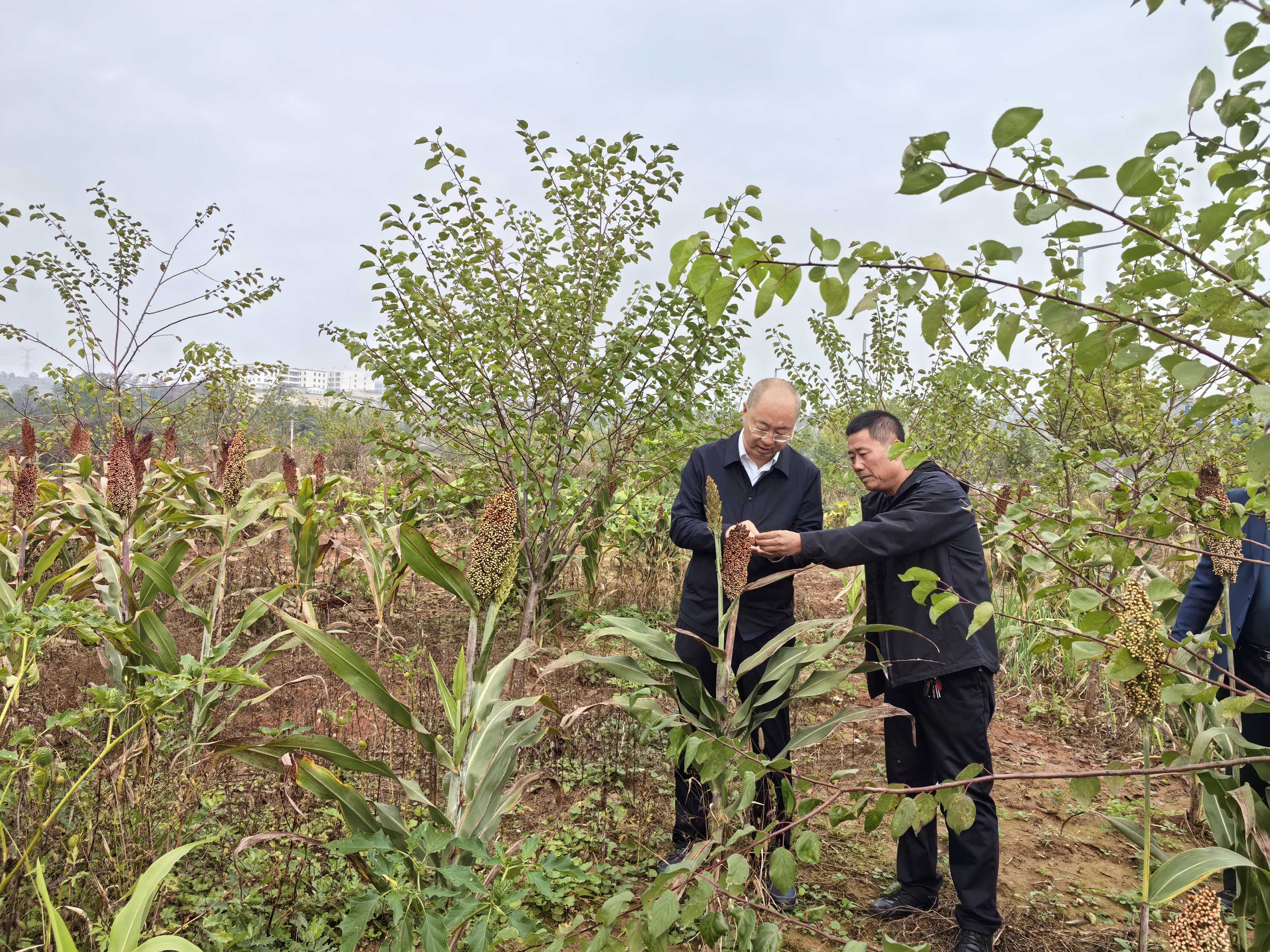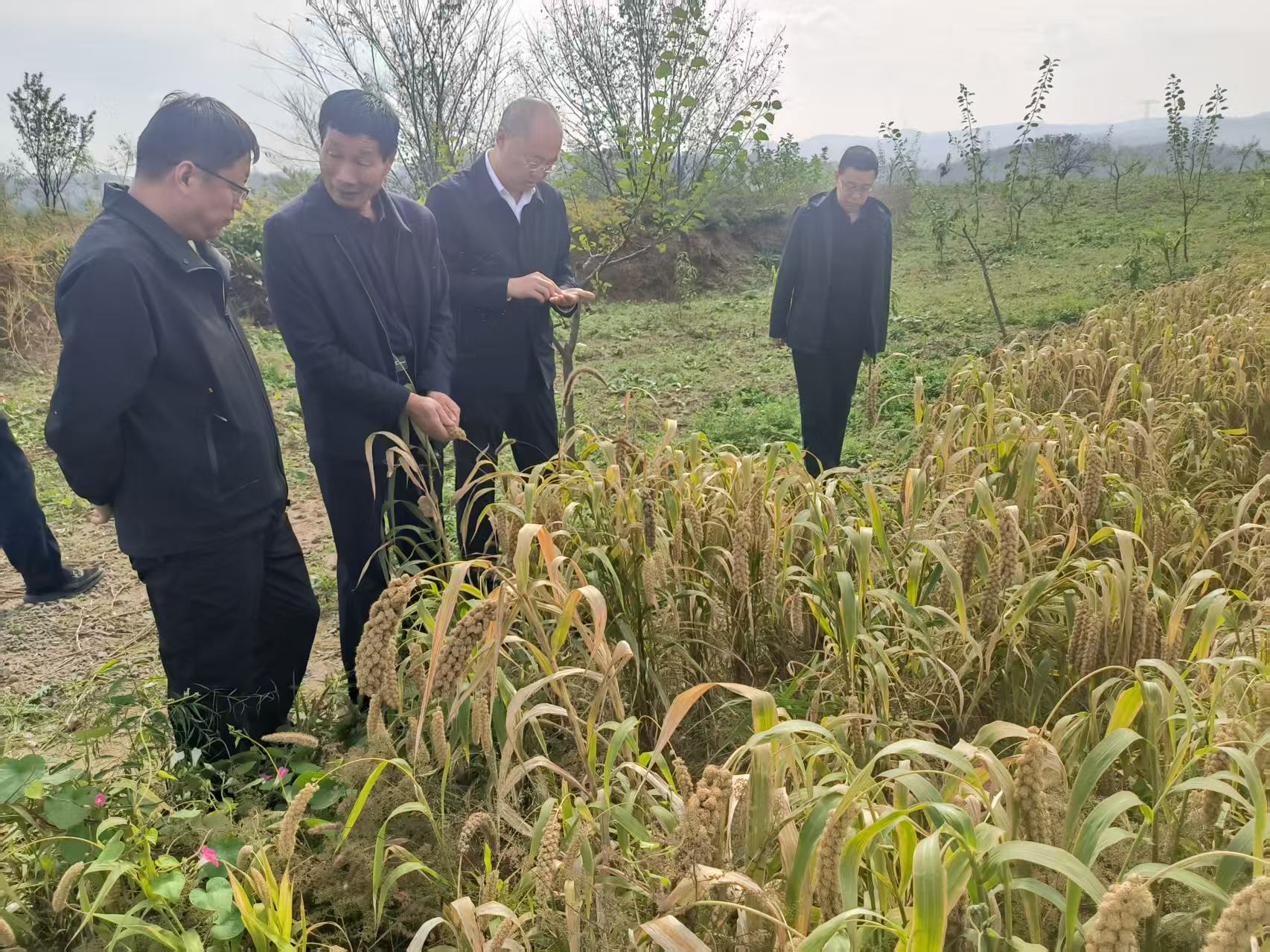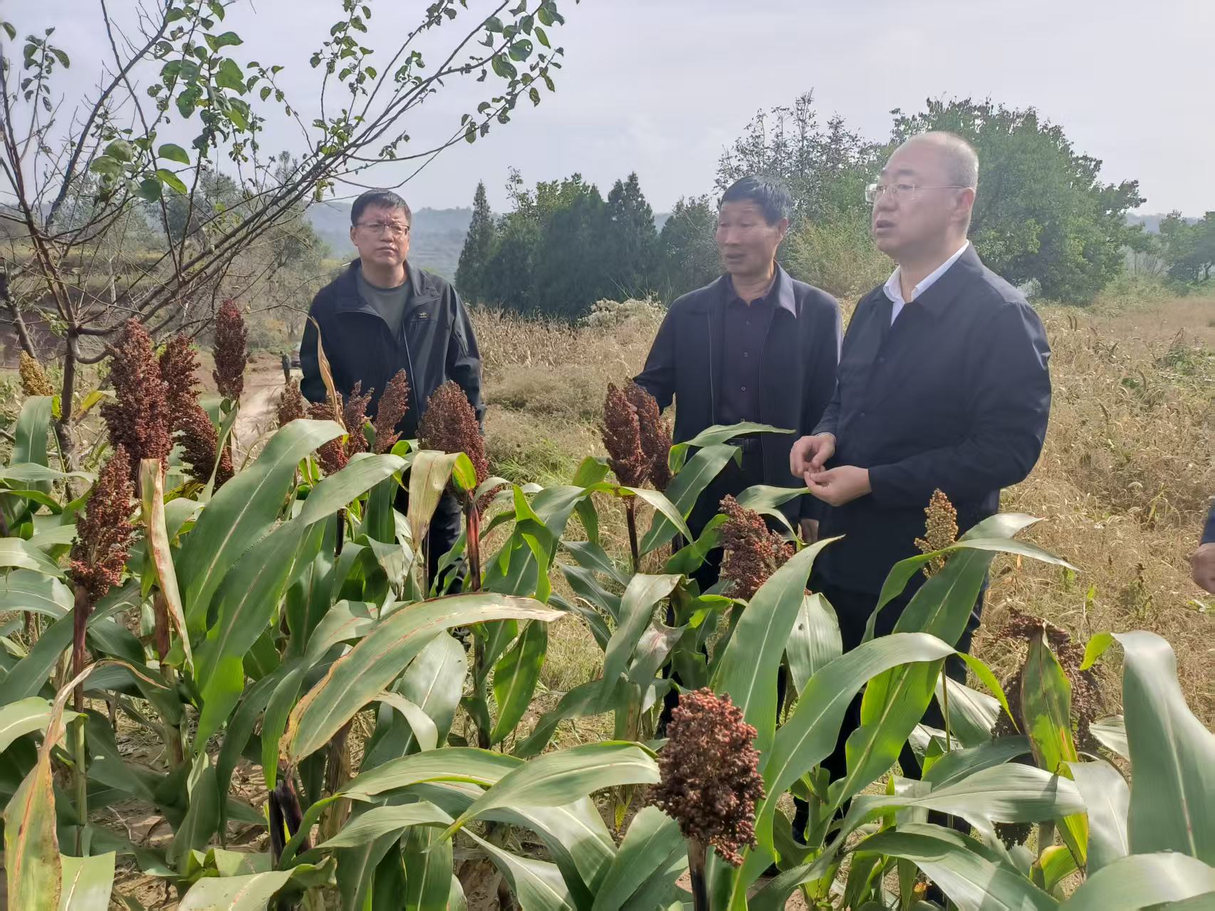 申晓峰下沉田间地头,实地查看玉米、高粱、谷子等农作物长势,向村“两委”负责人了解各村农作物的种植种类、面积、产量和秋收进度、晾晒场所等情况。当看到因连日阴雨天气导致庄稼地泥泞影响农作物收获和部分农作物出现霉变时指出,村干部要密切关注天气变化,充分发挥村“两委”的组织和服务作用,引导村民积极利用晴好天气抢收,发挥村民小组互帮互助的作用,最大限度降低连续降雨天气带来的不利影响,确保应收尽收、应收快收,全力保障秋粮颗粒归仓。