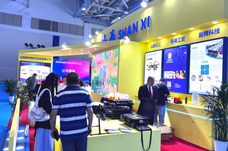 山西展区以“晋服全球”为核心主题,设置了综合展示、互动体验、推介洽谈等区域,聚集了元工通用航空、汉丰信息工程、升哲科技、耐特斯达、联桥翻译服务、鼓舞科技、易商工贸等企业,展示了电力巡检无人机、农业智能机器人、AI机器人云平台、物联网新型传感器、多语种语言翻译方案、肿瘤精准治疗一体化管理解决方案等,形成了“技术+设备+服务”的多元展示矩阵。
