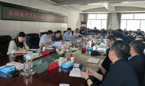 5月18日上午,调研组在市卫健委召开座谈会。市卫健委主任郭晓泓汇报了长治市县域医疗卫生一体化改革工作进展情况,潞城区、壶关县、襄垣县、沁源县卫体局、医保局、医疗集团负责人分别就一体化改革中人才引进、医保资金打包付费、药品集中带量采购、信息化建设等方面存在的问题和经验做法进行了探讨交流。