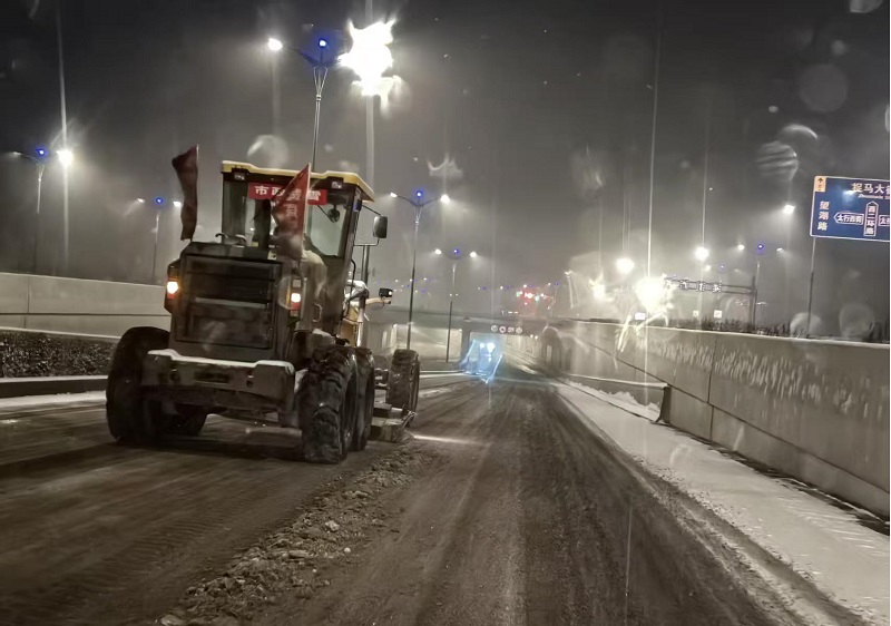 1月29日晚至30日凌晨,我市迎来了一轮雨雪天气过程。市市政建设中心以雪为令,启动应急预案,应急值班人员全员在岗,多支专业除雪作业队伍迅速集结待命。从29日晚8点开始,撒布机、刮平车、铲雪车等大型专业机械依次驶出直奔预定作业区域,人机协同对路面积雪进行推铲清运并施撒融雪剂,防止低温结冰,确保做到随下随清,雪中路通,雪停路畅。
