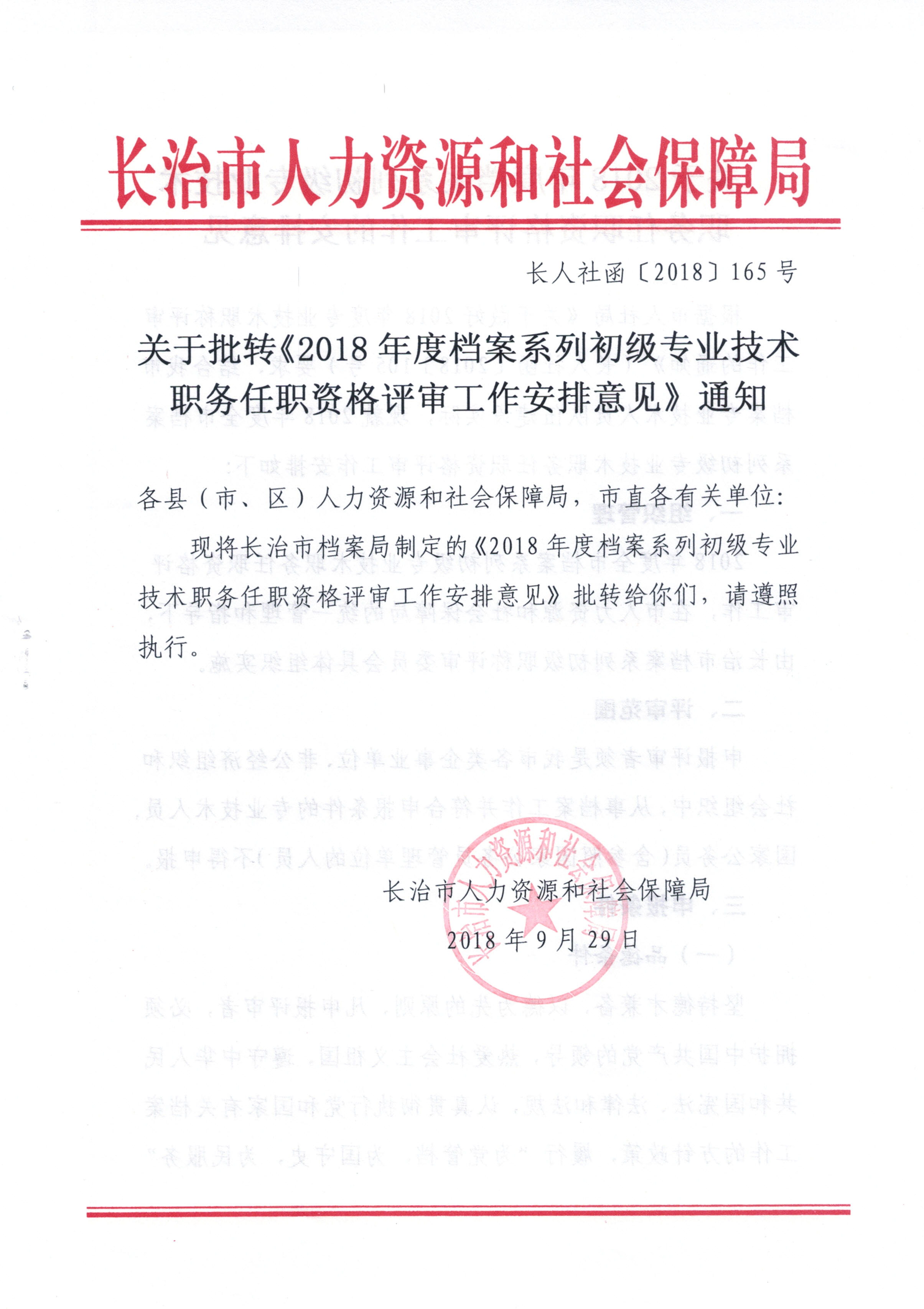 发文字号:长人社函〔2018〕165号