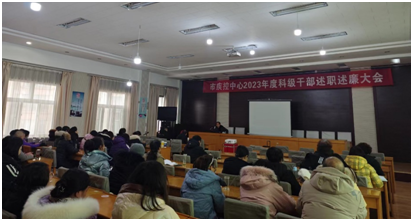 2月2日上午,市疾控中心在国策大厦九楼会议室召开2023年度科级干部述职述廉大会。中心党总支委员、副主任李永刚主持会议,党总支书记、主任原超普出席并讲话,中心领导班子成员及全体干部职工参加。