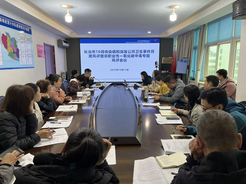 为做好我市秋冬季重点传染病及非职业性一氧化碳中毒防控工作,市疾控中心于10月11日在国策大厦办公区四楼会议室组织召开2025年10月份突发公共卫生事件月度风险评估暨非职业性一氧化碳中毒专题风险评估会议。中心党委书记、主任原超普,党委委员、副主任李永刚及全体专家组成员参加会议,新入职人员列席。
