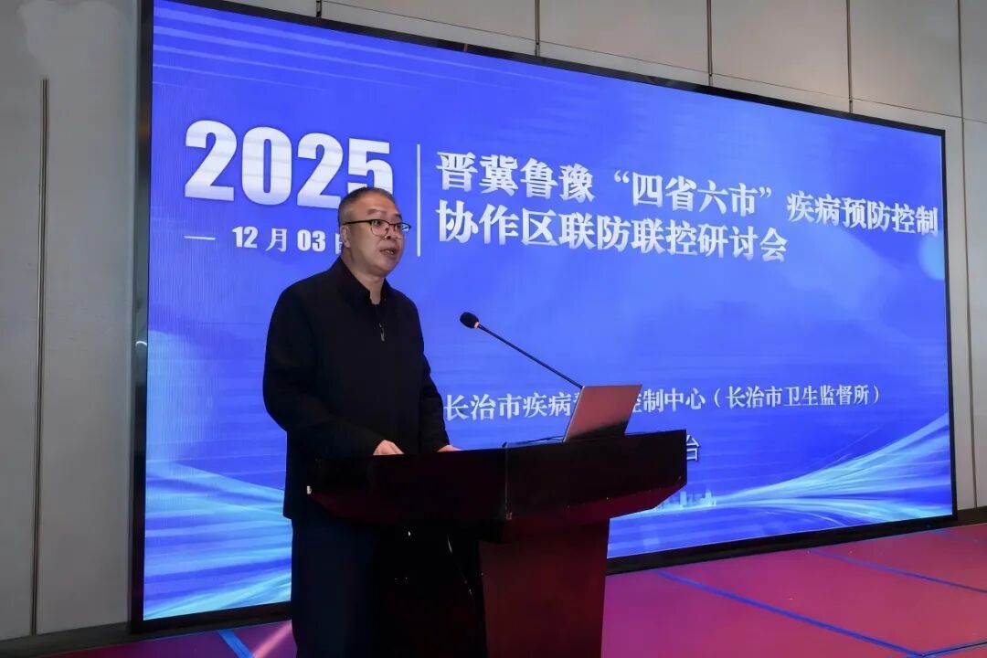 为深入贯彻落实健康中国战略,深化区域疾病预防控制协作,共同应对公共卫生风险挑战,12月3日,由长治市疾控中心轮值承办的2025年度晋冀鲁豫“四省六市”疾病预防控制协作区联防联控研讨会在长治滨湖文旅会议中心召开。山西省疾控中心副处级领导干部李永平,长治市卫生健康委党委委员、副主任、市疾控局局长崔旭斌,长治市疾控中心党委书记、主任原超普,以及来自邯郸、邢台、聊城、安阳、濮阳协作区成员单位的疾控局、疾控中心主要负责同志和分管疾控监督员工作的负责同志、联络协调联防联控工作的负责同志出席会议。长治市疾控中心各业务科室负责人、各县区疾控中心主任列席会议。会议由长治市疾控中心党委委员、副主任李永刚主持。