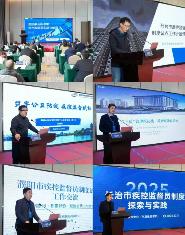 在交流发言环节,邯郸、邢台、聊城、安阳、濮阳、长治六市疾控中心主要负责同志围绕疾控监督员制度试点工作,分别介绍了各市的特色做法、实践体会与思考建议。交流内容务实、亮点突出,现场气氛热烈,达到了互学互鉴、启发思路、共同提高的预期效果。