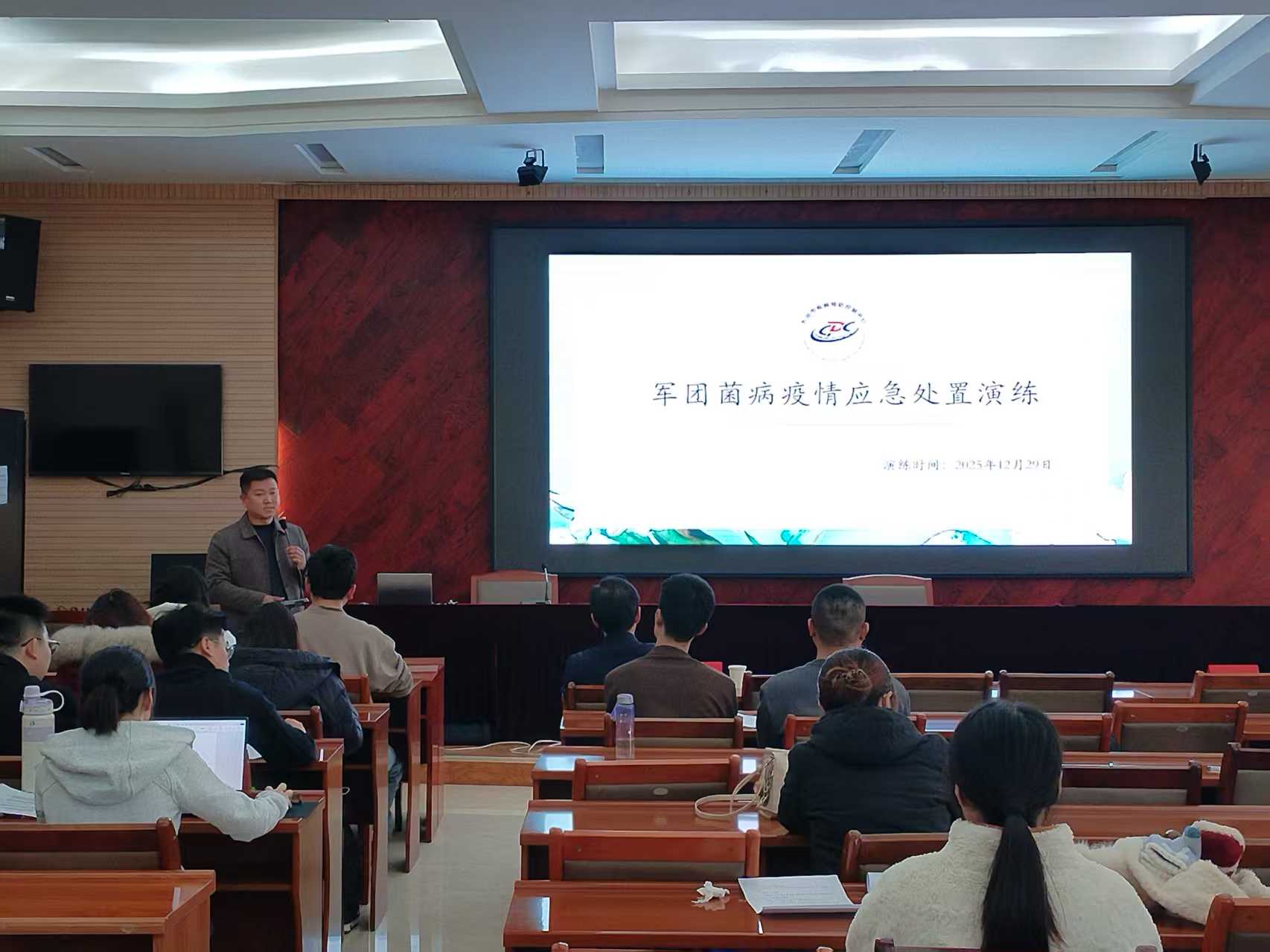 为全面提升我市突发公共卫生事件应急处置能力,强化多部门协同作战机制,保障人民群众健康安全。2025年12月29日,长治市疾控中心组织开展了军团菌病疫情应急处置演练。中心应急队员、专家组成员、相关科室工作人员及新入职人员40余人参加演练。中心党委书记、主任原超普,党委委员、副主任李永刚出席并讲话。