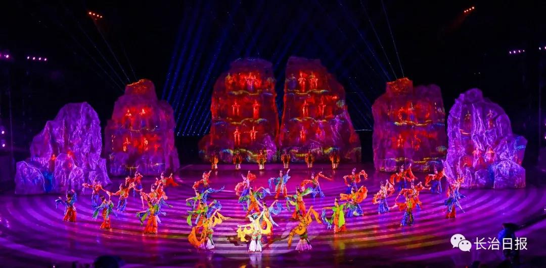 随后,与会嘉宾一同观看了文艺演出。演出分神话太行、古韵太行、红色太行、幸福太行四个篇章,通过歌舞、戏剧等形式,融合现代科技与舞台艺术,精彩展示了太行文脉的源远流长、传统文化的斑斓异彩,深情回顾了党领导太行军民浴血抗战的光辉历史,生动呈现了新时代太行人民全面小康的幸福生活和奋斗图景。整场活动在《天下太行》的歌声中落下帷幕。演出大气磅礴、激荡人心,现场掌声经久不息。