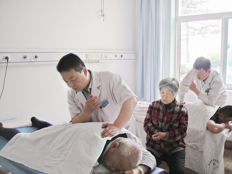 沈医生(左一)正在给患者治疗。